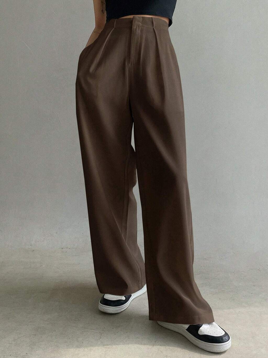 Plicated Detail Wide Leg Suit Pants Business Attire