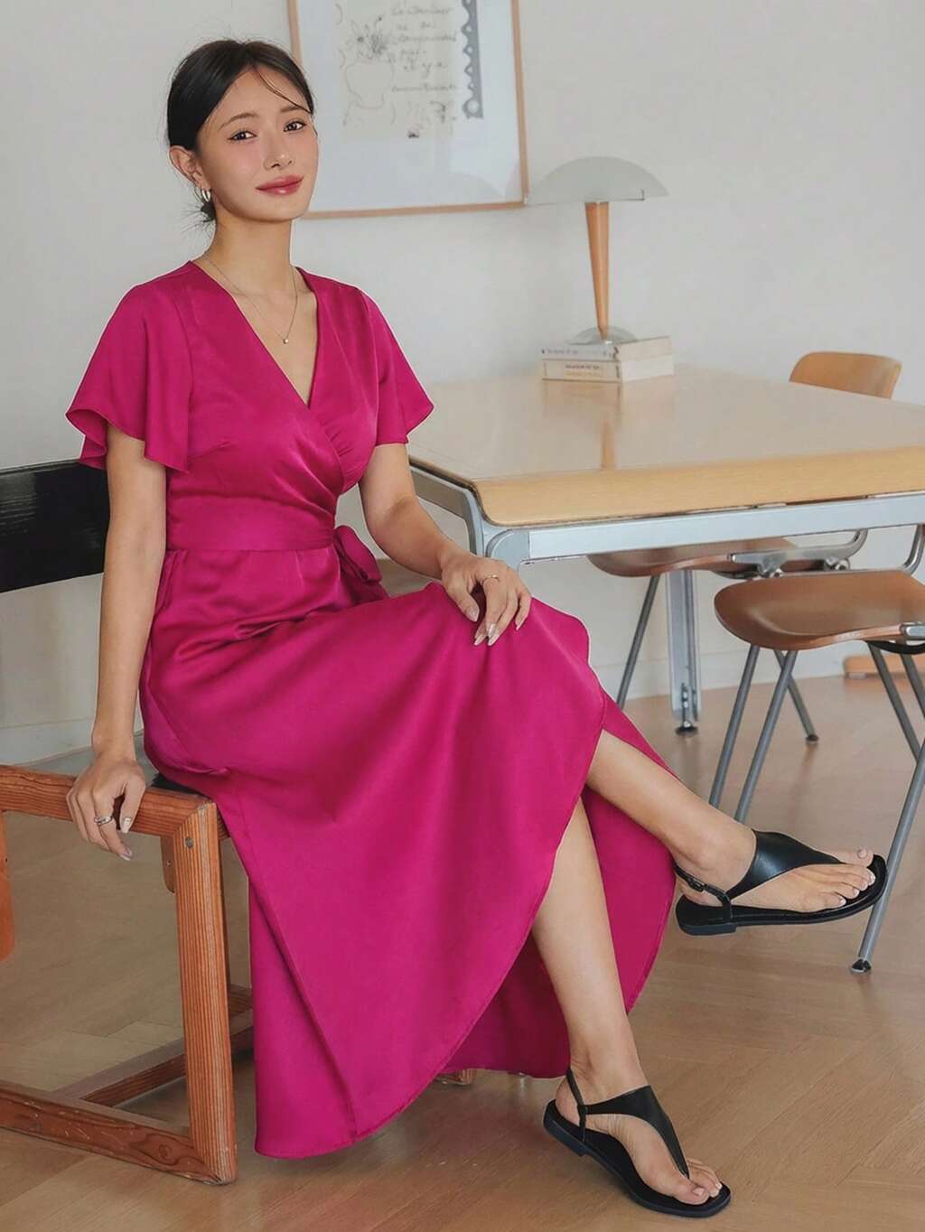 Satin Satin Elegant Long Wrap Dress, Suitable For Valentine's Day, Wedding, Party, Formal Occasions, Fashion, Slim Fit, Commute, Spring/Summer Sundress