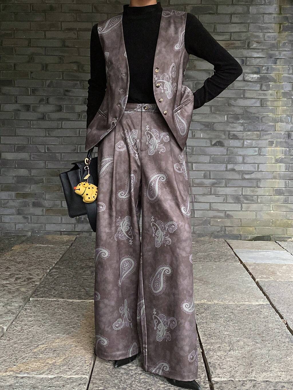 Women's Cashew Flower All-Over Print Bohemian V-Neck Sleeveless Top And Straight Leg Pants 2-Piece Set, Casual Vacation Style