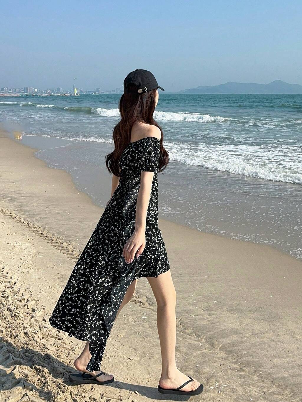 Women Summer Floral Ruffle Strap Mid-Length Dress Dress Cruise Outfit For Women