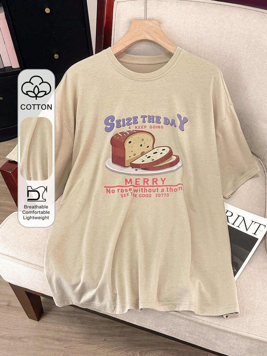 Fashionable Round Neck Casual Drop-Shoulder T-Shirt Summer