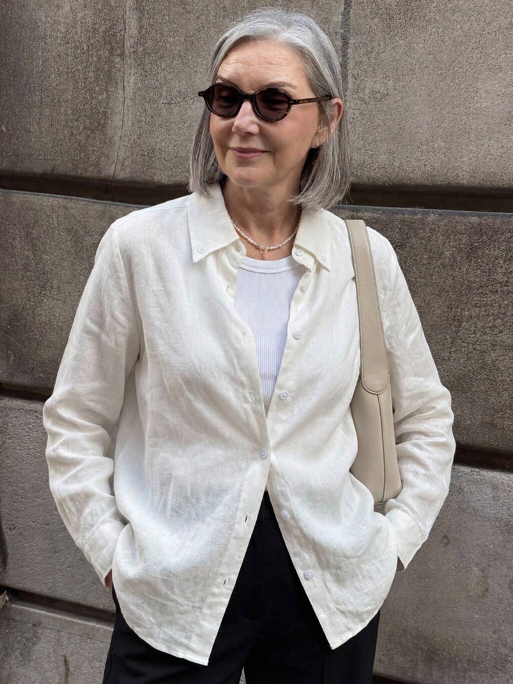 Women's Loose Solid Color Long Sleeve Linen Casual Shirt With Turndown Collar, Spring/Summer