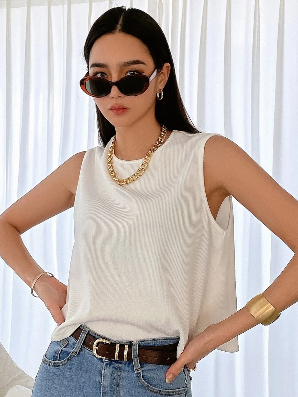 Regular Length Solid Color Fitted Casual Camisole, Not Tall Size