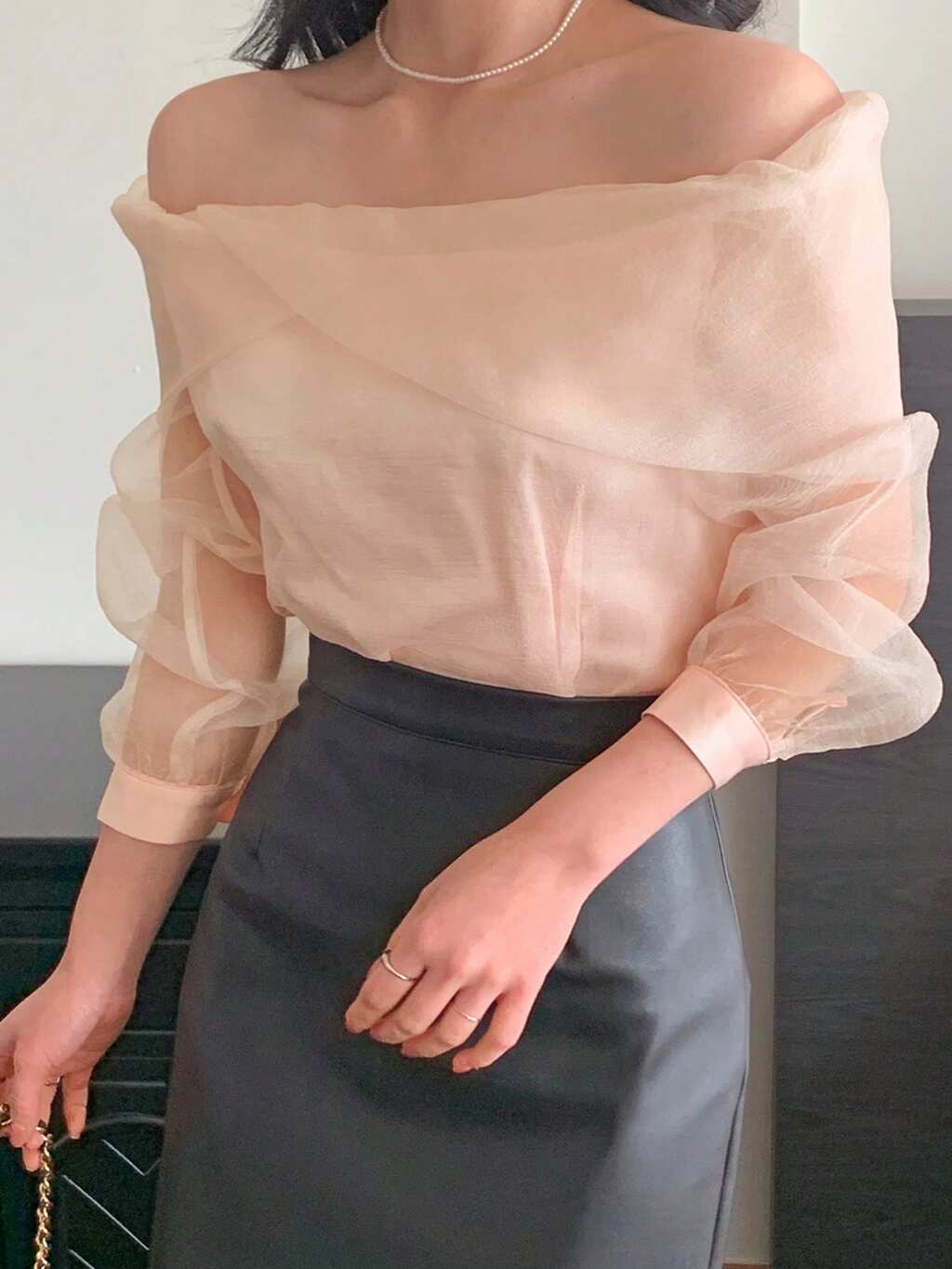 Women's Off-Shoulder Fitted Sheer Mesh Blouse Summer