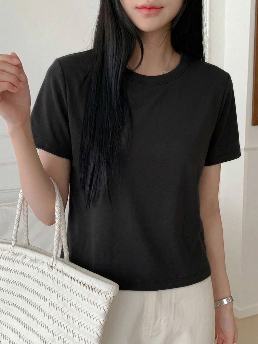 Women's Solid Color Round Neck Short Sleeve Casual Versatile T-Shirt