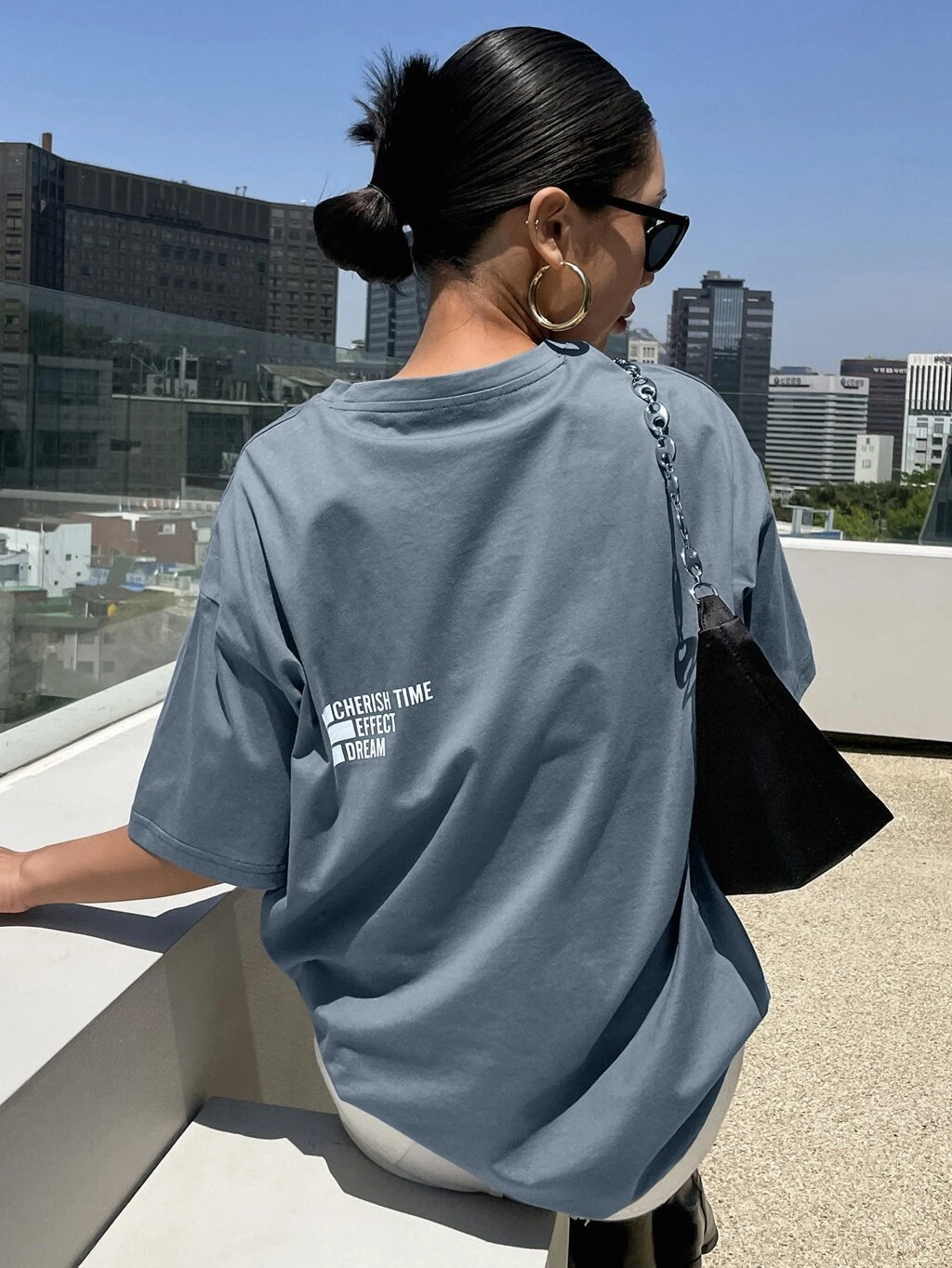 Letter Graphic Drop Shoulder Tee CHERISH TIME EFFECT DREAM Oversized T-Shirt