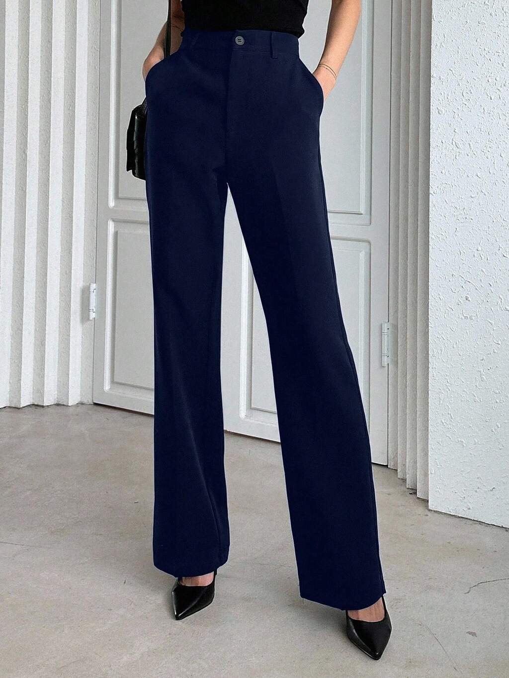 Business Casual Solid Color Straight Leg Pants Low Rise