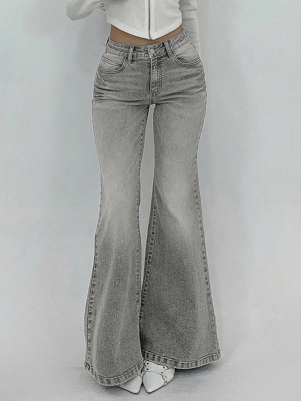 Women's Solid Color Casual Baggy Denim Jeans With Pockets