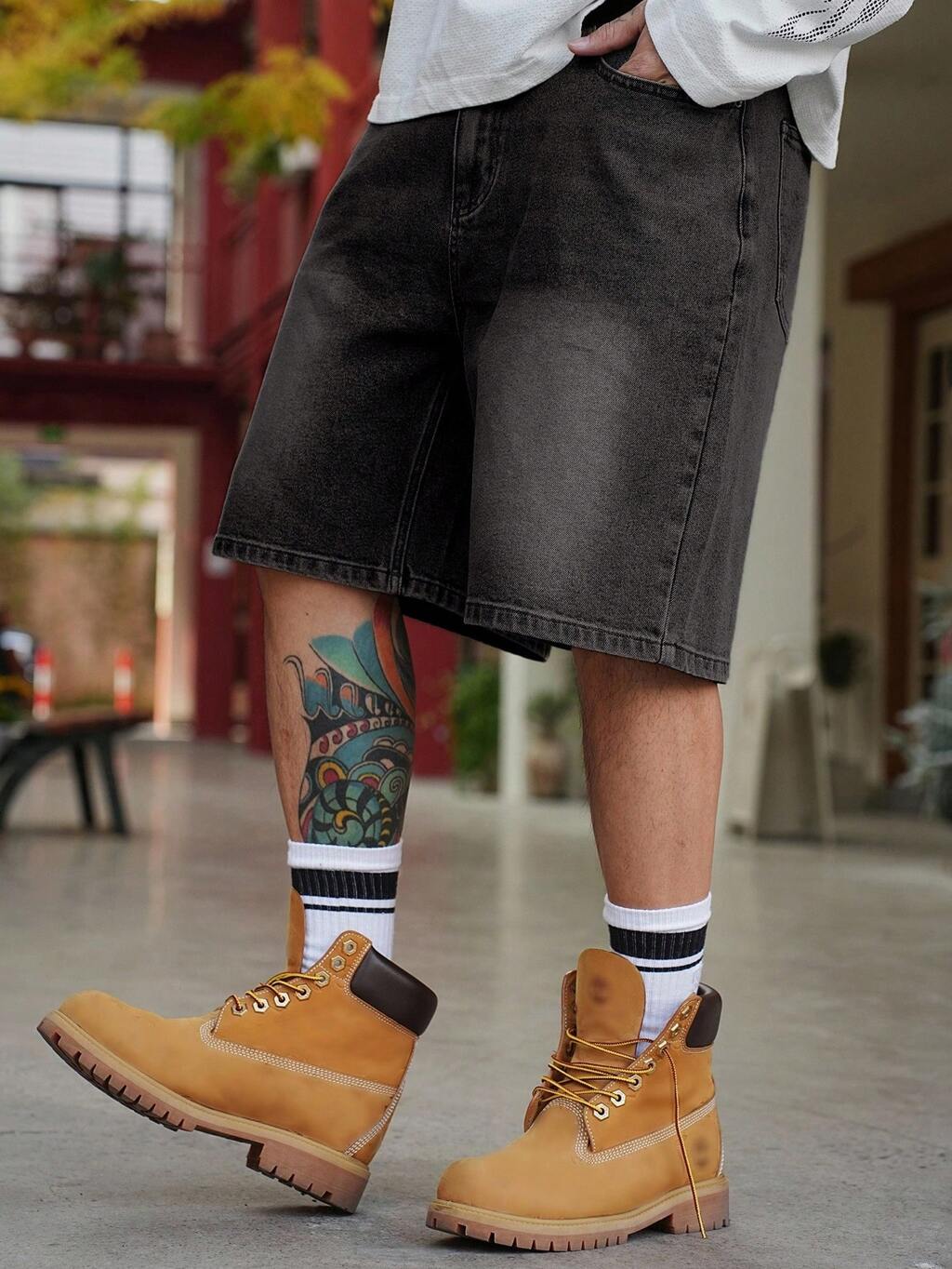 Summer Solid Color Pocket Loose Casual Men's Denim Shorts