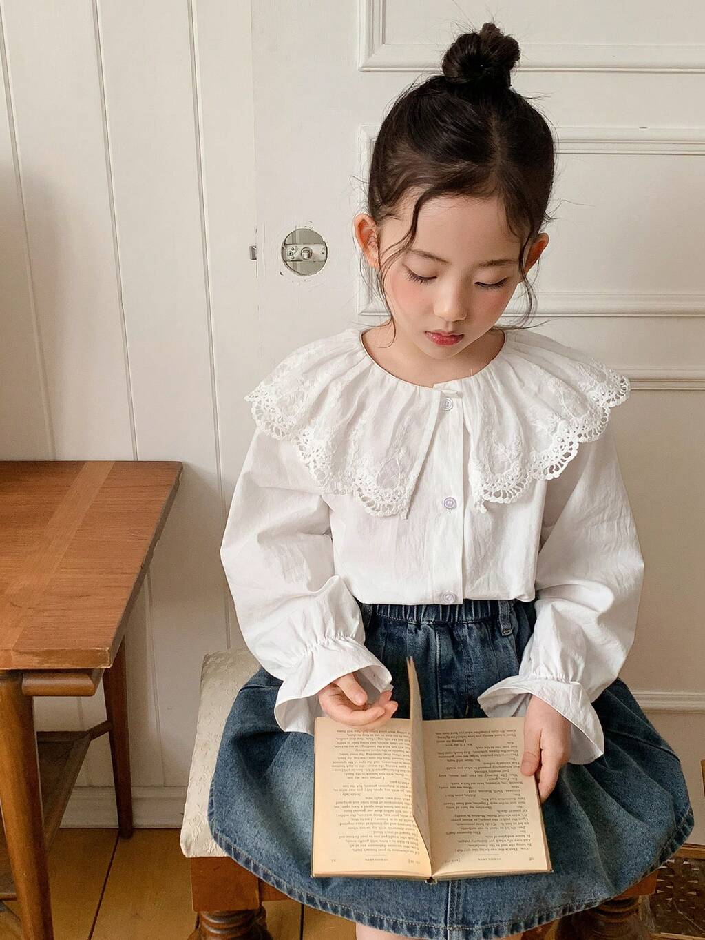 Young Girls Lace Round Neck Long Sleeve Blouse, Spring/Autumn