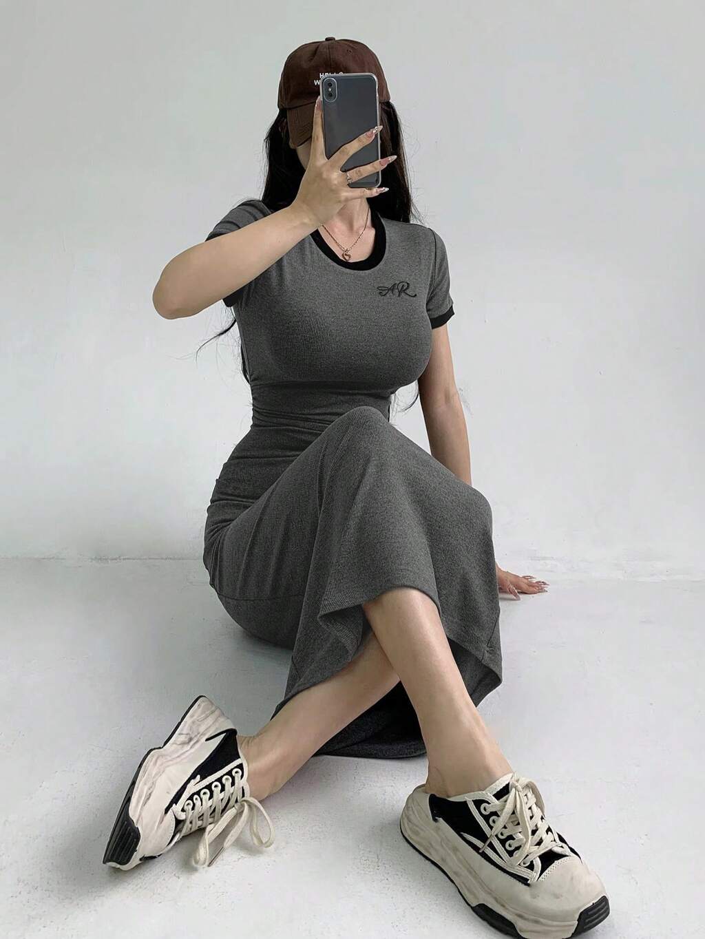 Koszulka z nadrukiem i wyciętym napisem, prążkowana, na co dzień, na festiwal, na jesień, na powrót do szkoły, z długim rękawem, damska