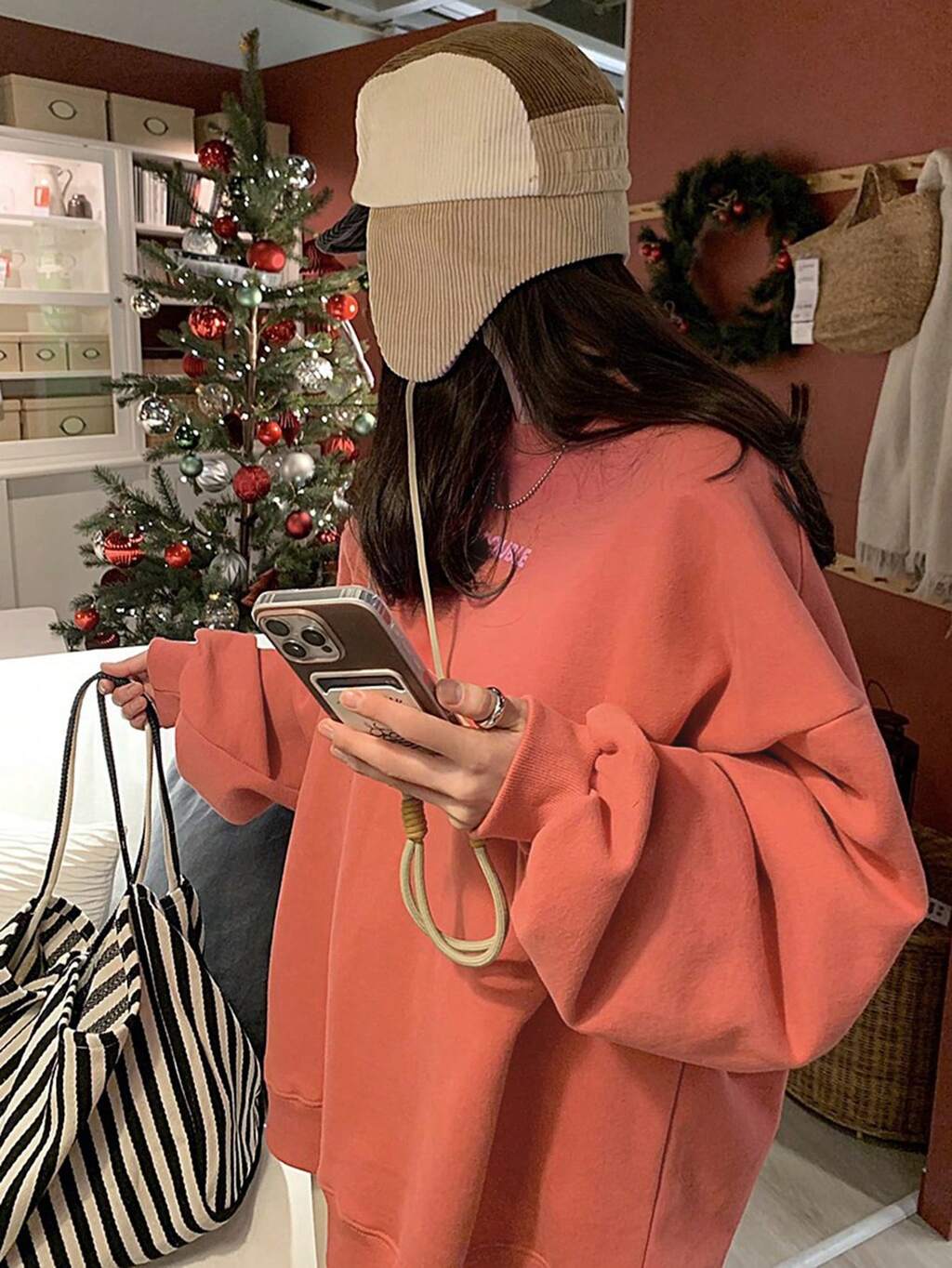 Luźna bluza z kapturem i nadrukiem w litery, jesień i zima