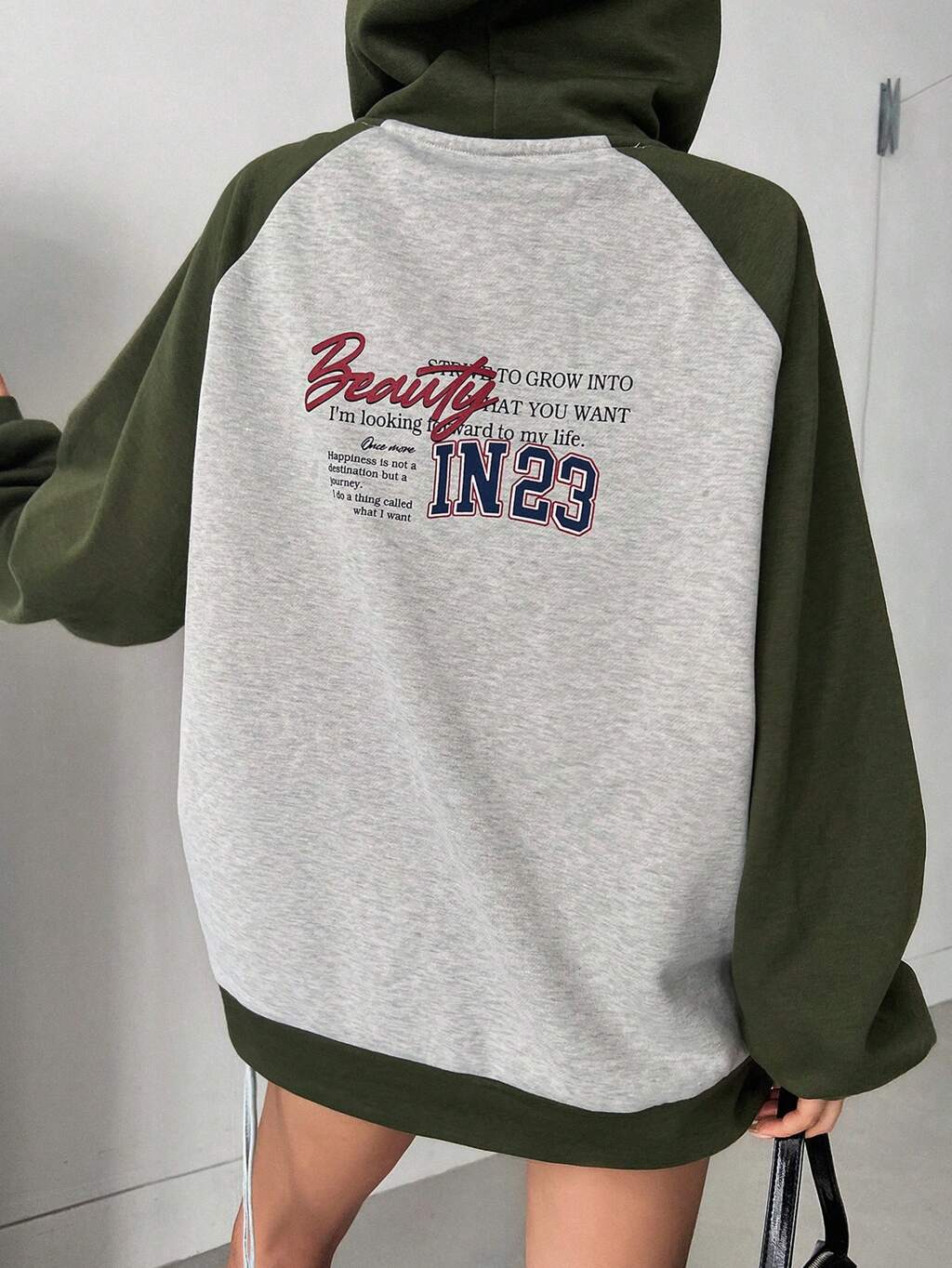 Bluza z kapturem i ściągaczem ze ściągaczem i nadrukiem Slogan