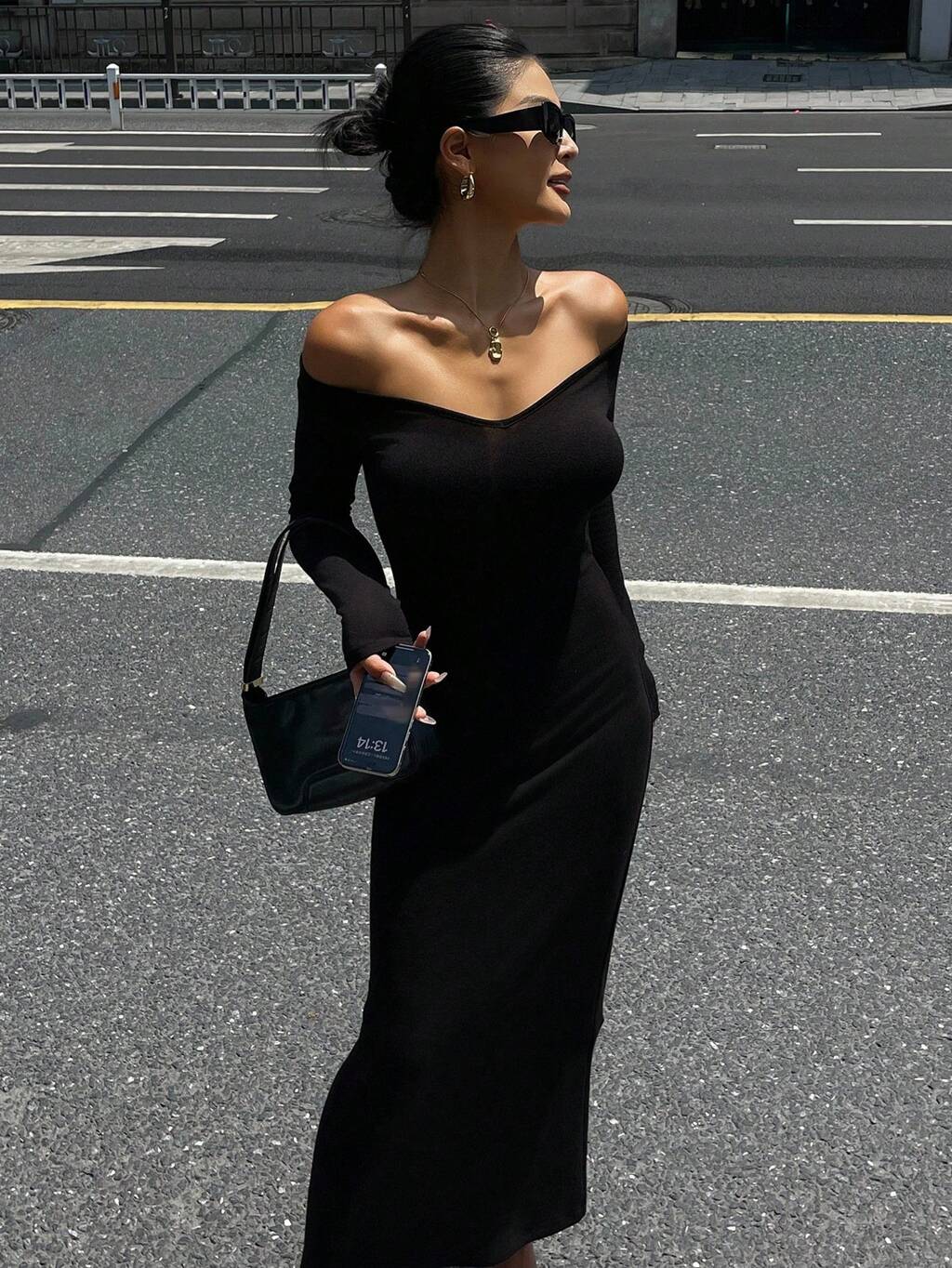 Sukienka damska z dekoltem w serek, długim rękawem i marszczeniem w talii, sukienka jesienna z odkrytymi ramionami i maxi