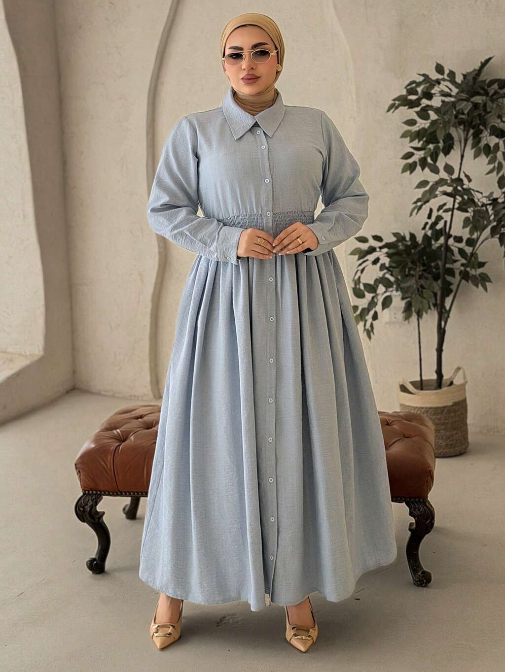 Dazy Plus Sukienka koszulowa damska w jednolitym kolorze z klapami w kolorze niebieskim, w dużym rozmiarze, z marszczeniami w talii, wyszczuplająca, długa, odpowiednia do dojazdów do pracy, na wiosnę i jesień