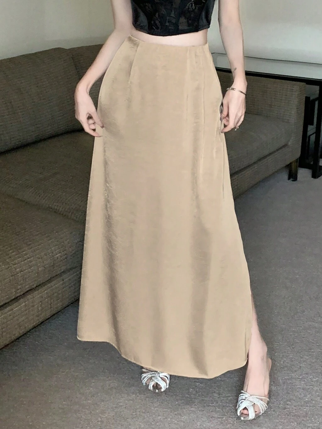 Spódnica damska w jednolitym kolorze, długa, swobodna, o kroju litery A, jesienne spódnice