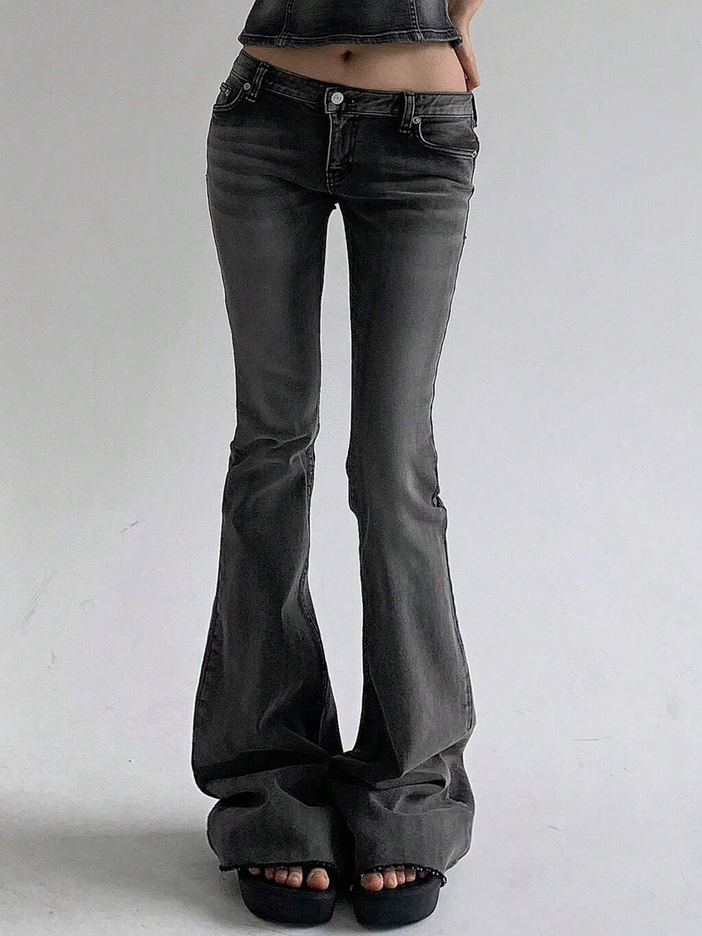 Damskie jeansy rozszerzane z niską talią