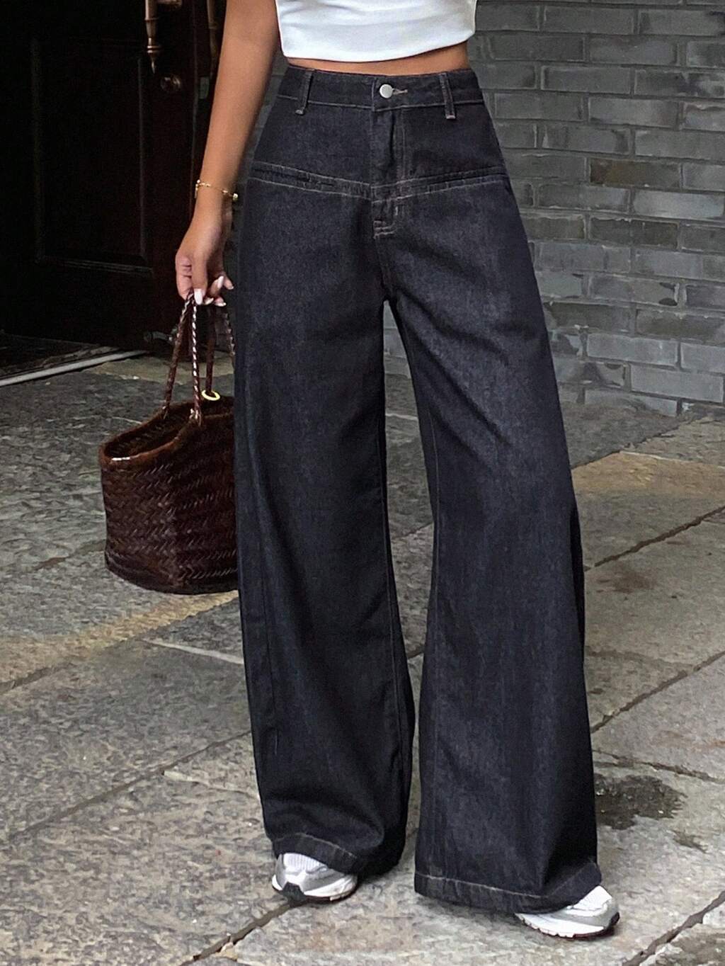 Jeansy damskie z szerokimi nogawkami w kontrastowym kolorze, patchworkowe, Old Money, biznesowe, casualowe