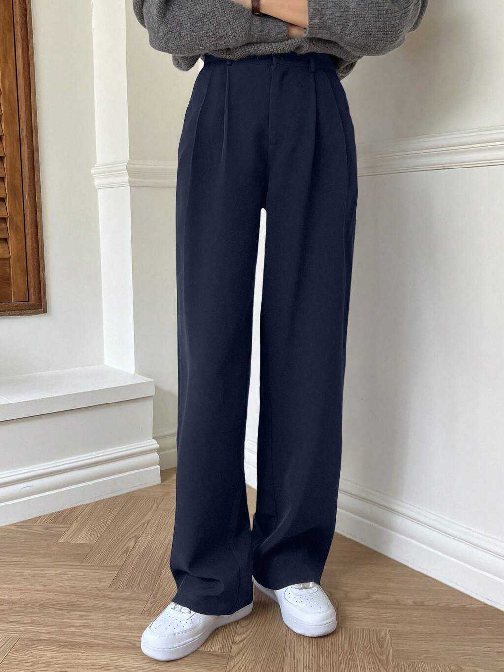 Damskie spodnie plisowane z prostymi nogawkami, biznesowe i casualowe