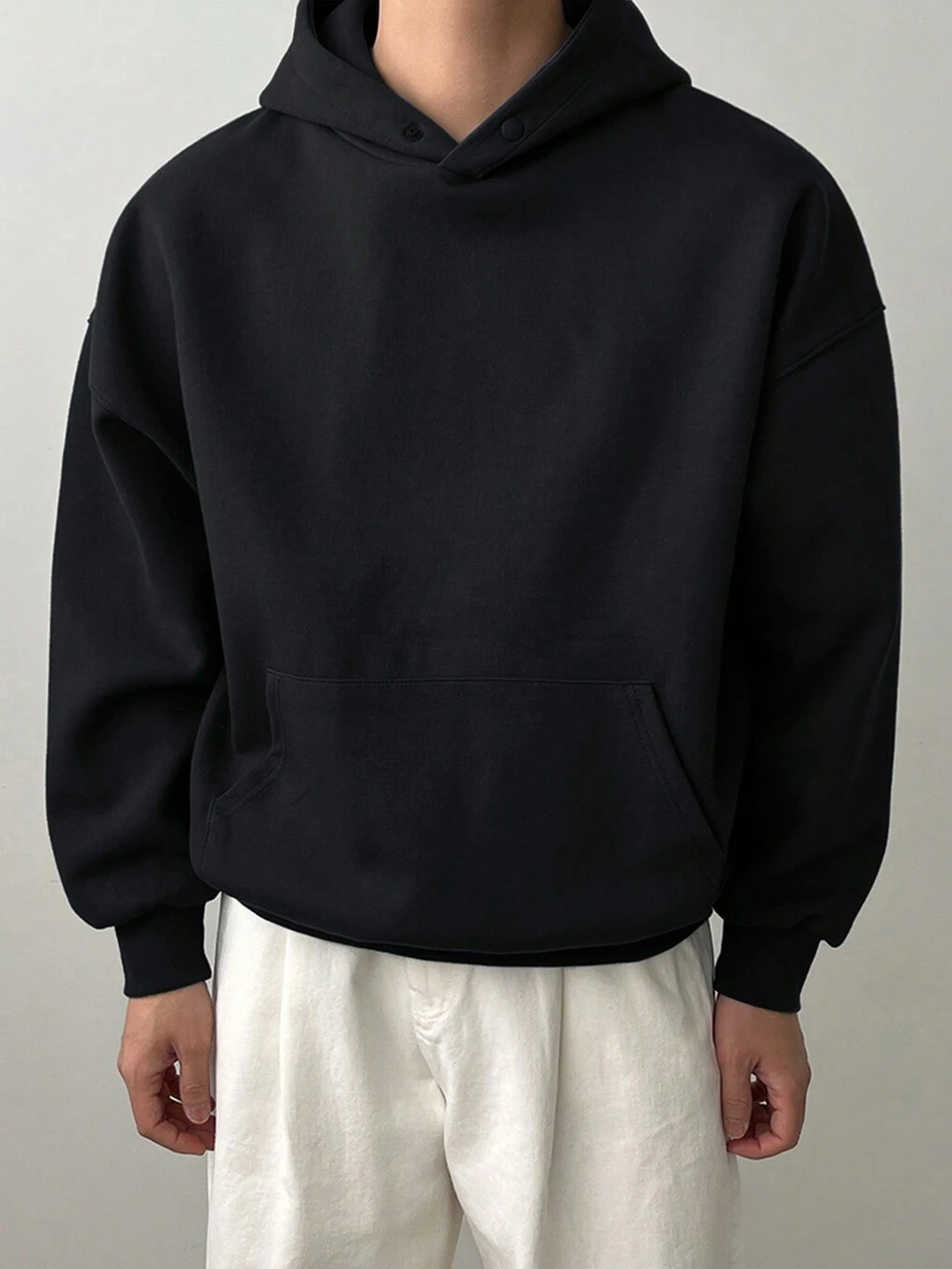 Męska bluza z kapturem w jednolitym kolorze, z długimi rękawami i opadającymi ramionami, z kieszeniami, jesień/zima