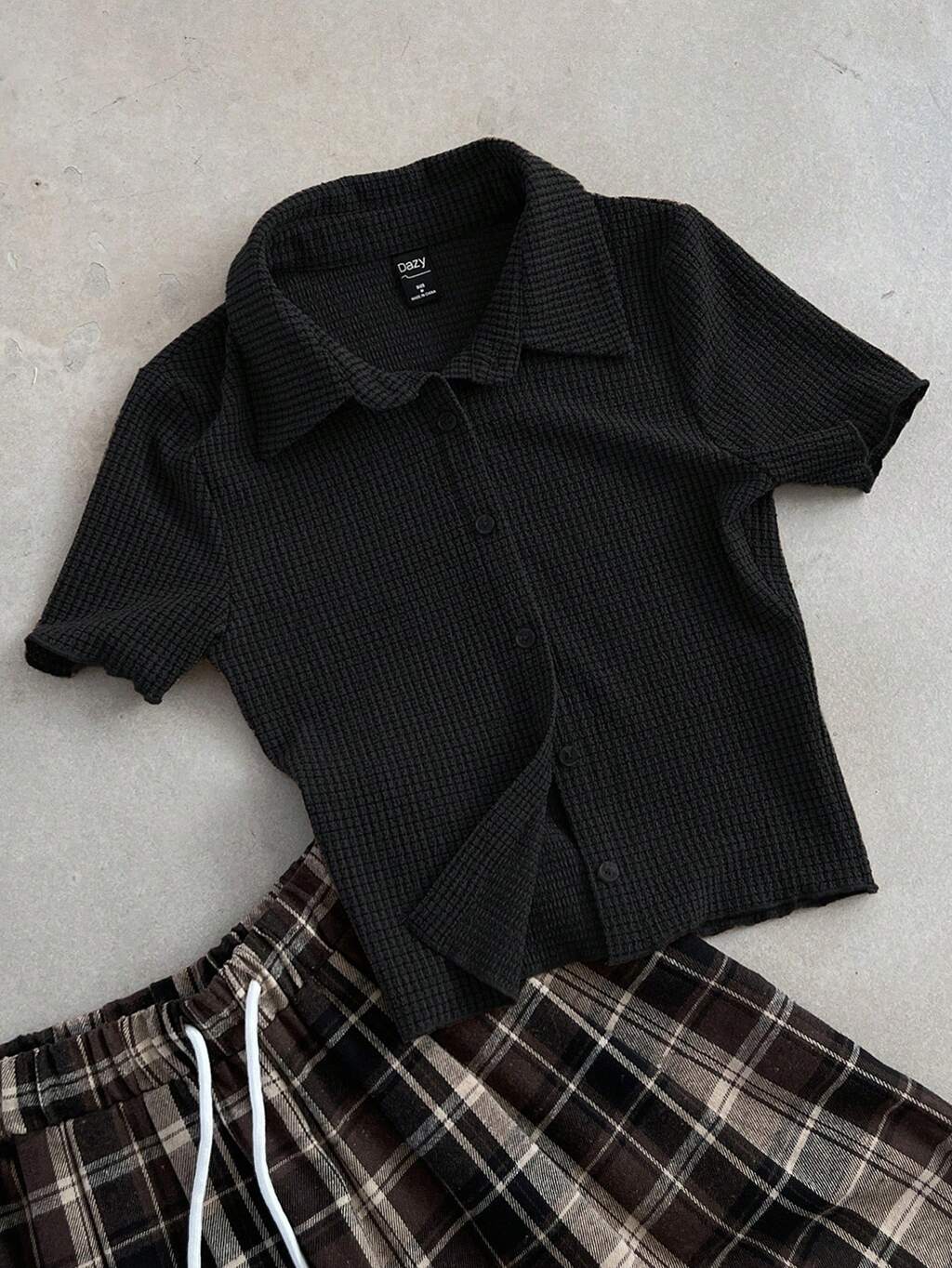 Camiseta feminina cropped de manga curta com textura sólida para o verão