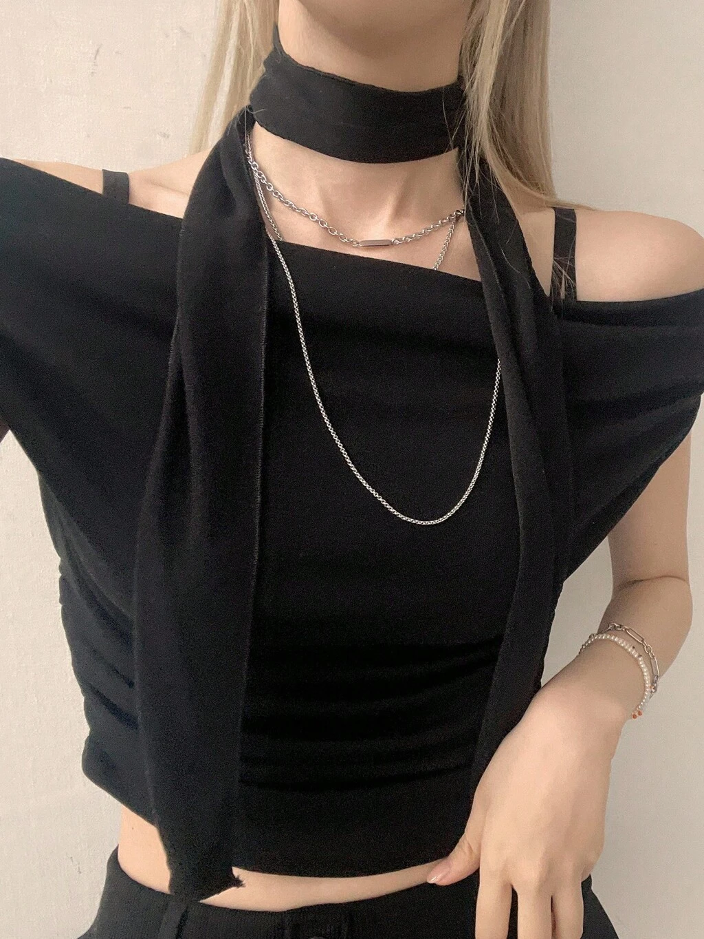 Camiseta de Manga Longa com Ombro Assimétrico Estilo Coreano para Férias