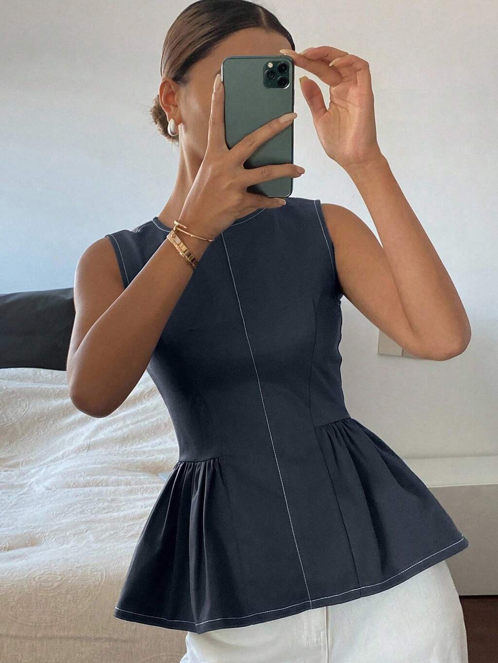 Top Casual Ajustada com Pregas em Cor Sólida para Mulheres, Adequada para Encontros e Passeios no Verão