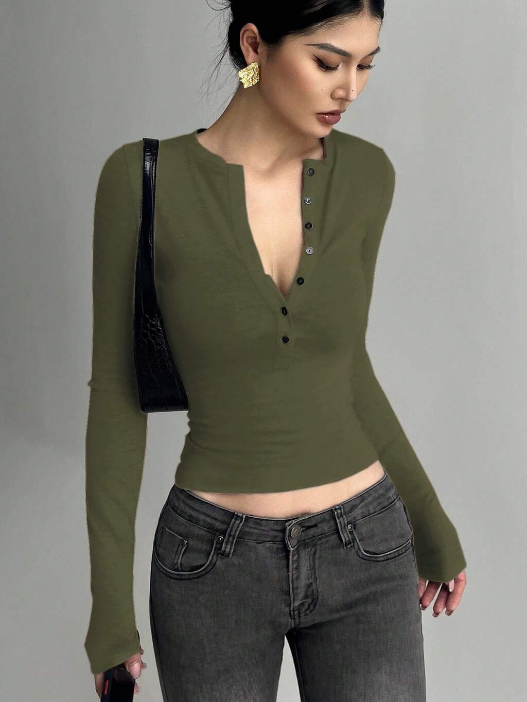 Camiseta Bodycon de Manga Longa com Zíper Parcial Estilo Y2K para Mulheres