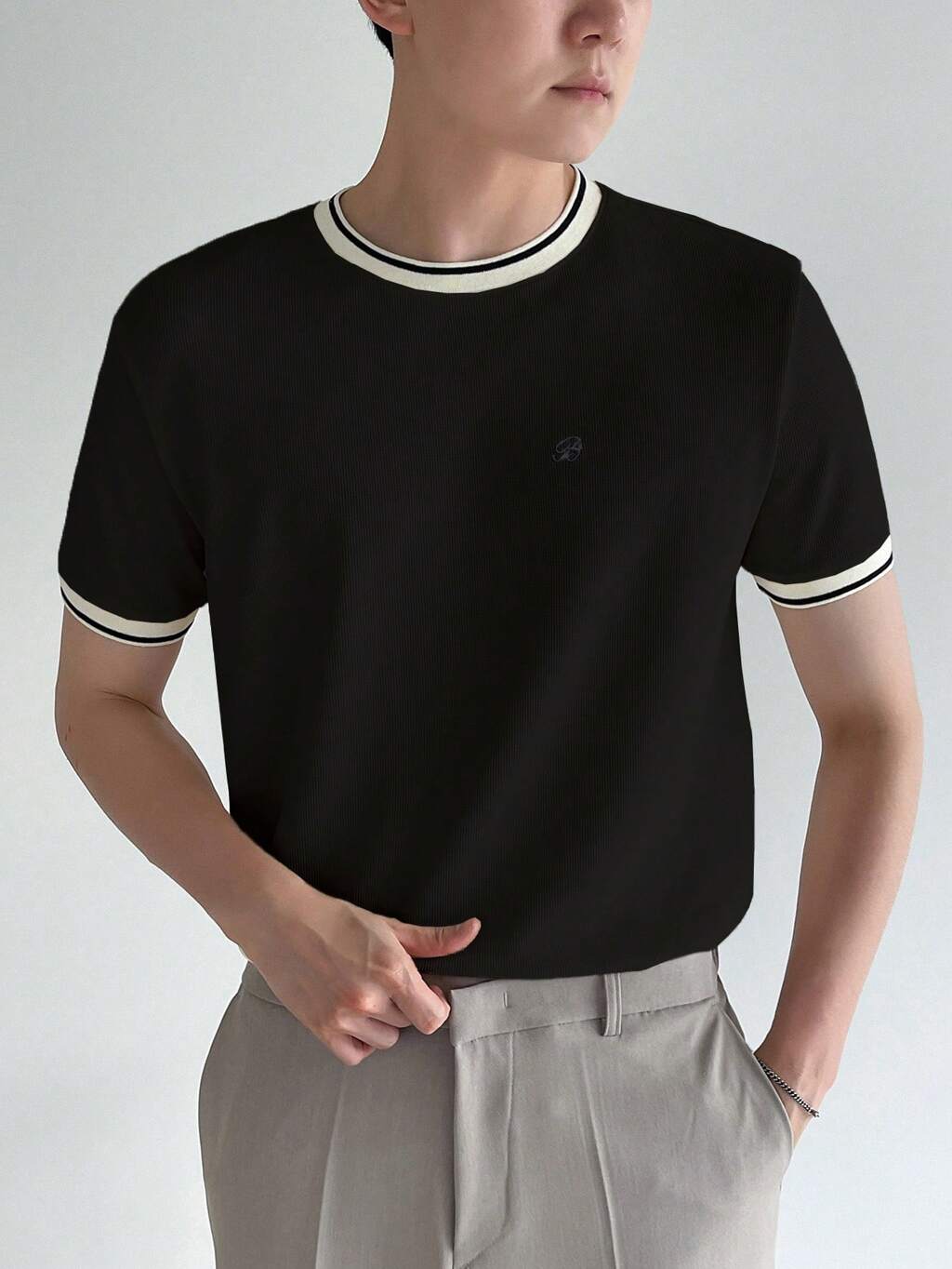 Camiseta Masculina de Manga Curta, Gola Redonda, Casual e Folgada com Listras, Verão