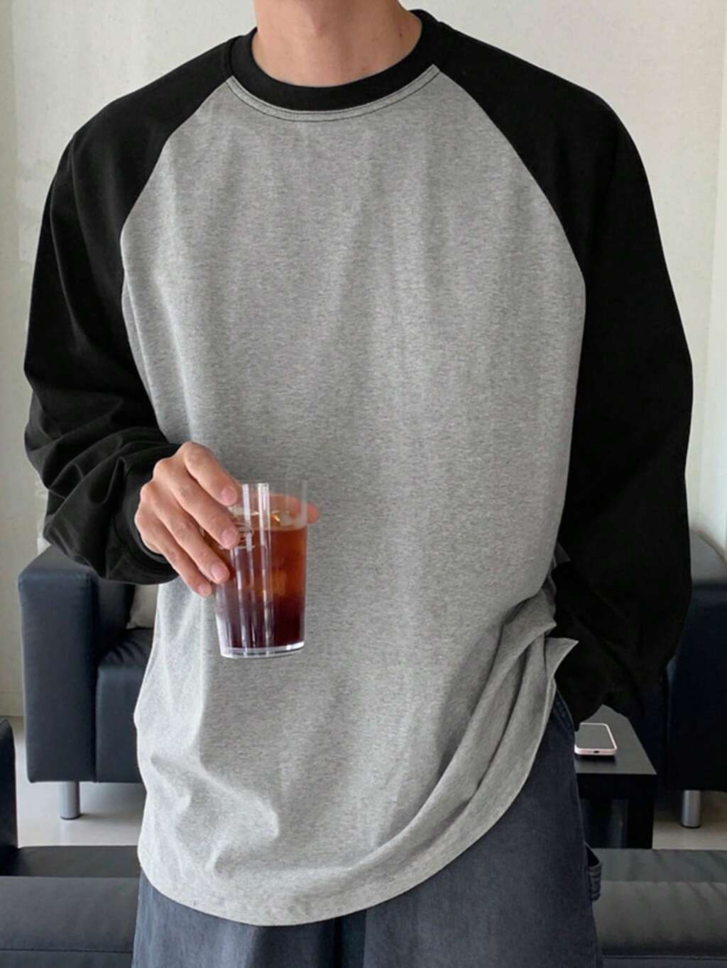 Camiseta de Manga Longa com Recortes e Contraste de Cores para Homens, para o Outono